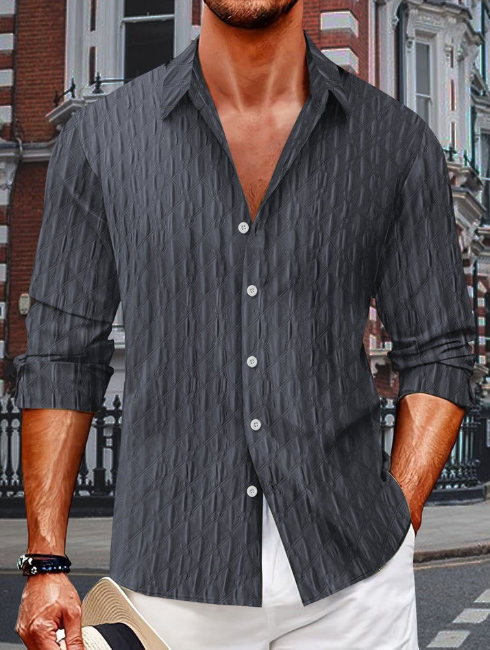Checkered single breasted men's jacquard lapel long sleeved shirt