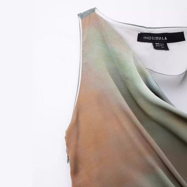 Fashionable Drop Neck Sleeveless Tie Dyed Waist Long Dress for Women
