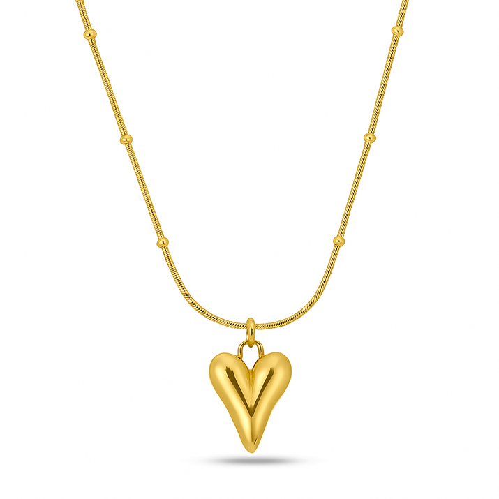 Showcase your style with this elegant 18K gold-plated heart pendant necklace featuring a trendy ball chain design. This eye-catching piece includes a bold puffed heart charm that symbolizes love and self-expression, making it a must-have for modern jewelry lovers.