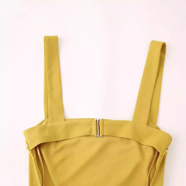 High waisted pleated mid length dress for women