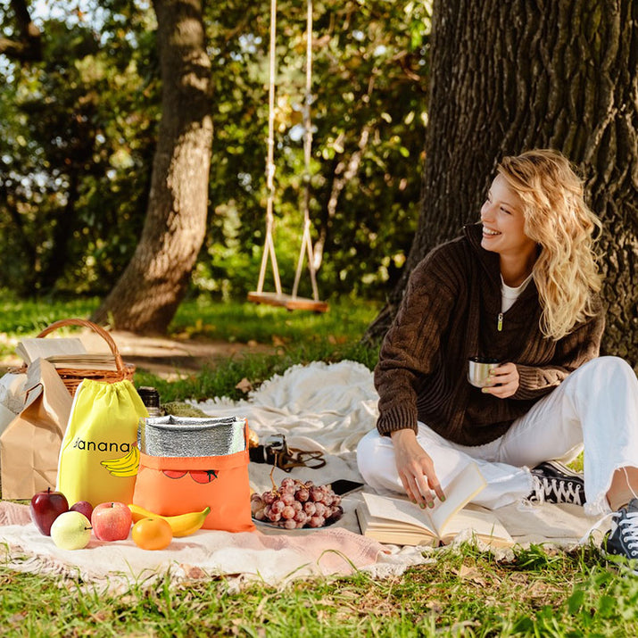 Insulated bag for keeping fresh: reusable storage organizer for bananas, lettuce and vegetables (drawstring closure)