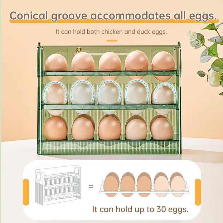 Large-capacity fridge egg storage, portable multi-layer tray, auto-open/close holder