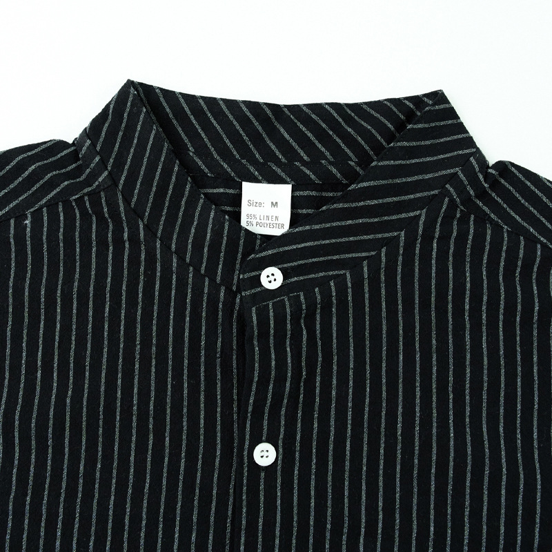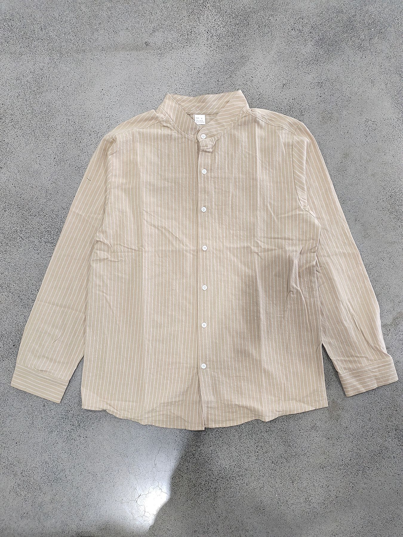 Men's striped stand up collar long sleeved shirt