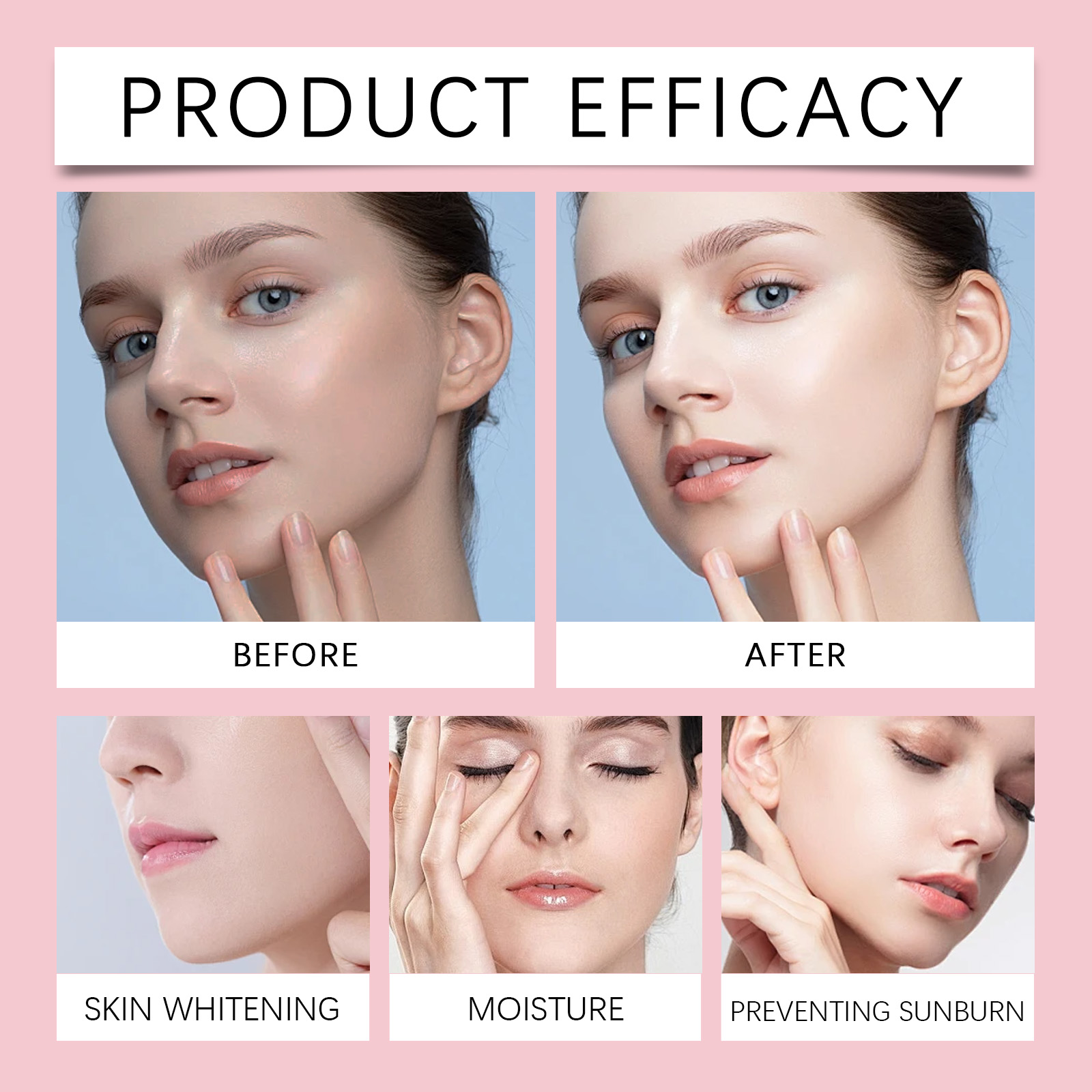 Our face cream contains titanium dioxide and ethyl hexyl methoxycinnamate. It forms a protective barrier against UV damage. Hyaluronic acid deeply locks in moisture, keeping skin hydrated and smooth. The way to use it is simple: clean the skin and keep it dry. Apply appropriate amount of sunscreen to your face and neck. After applying, wait for the sunscreen to form a protective coating on the surface of the skin. And vitamin E helps to even out the complexion and make the skin bright and translucent.